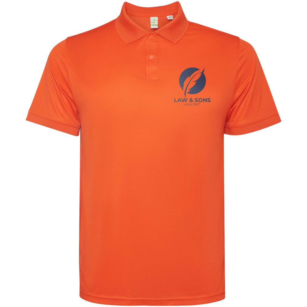 Herenpolo met korte mouwen. Versterkte bedekte naden in de binnenkraag. 1x1 geribde manchetten en kraag. Zijnaden. Knoopsluiting met 3 knopen en zijsplitten.