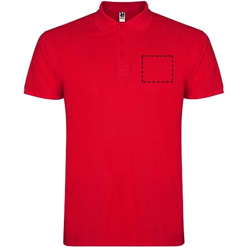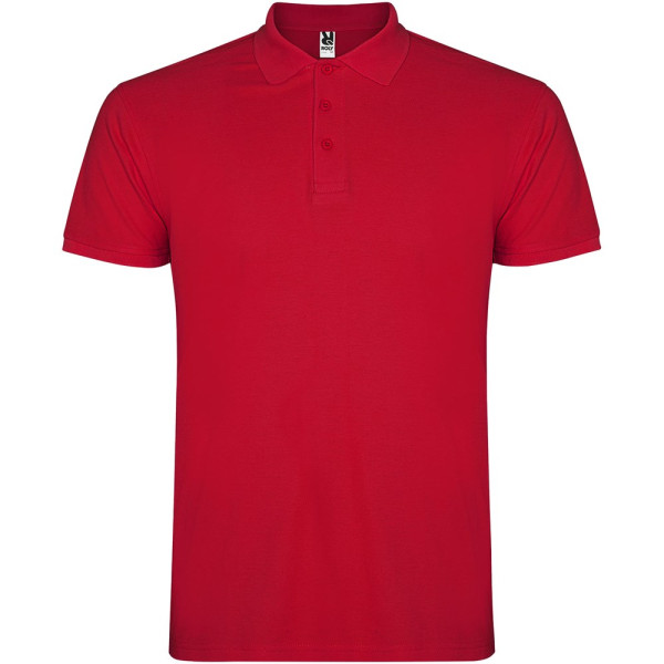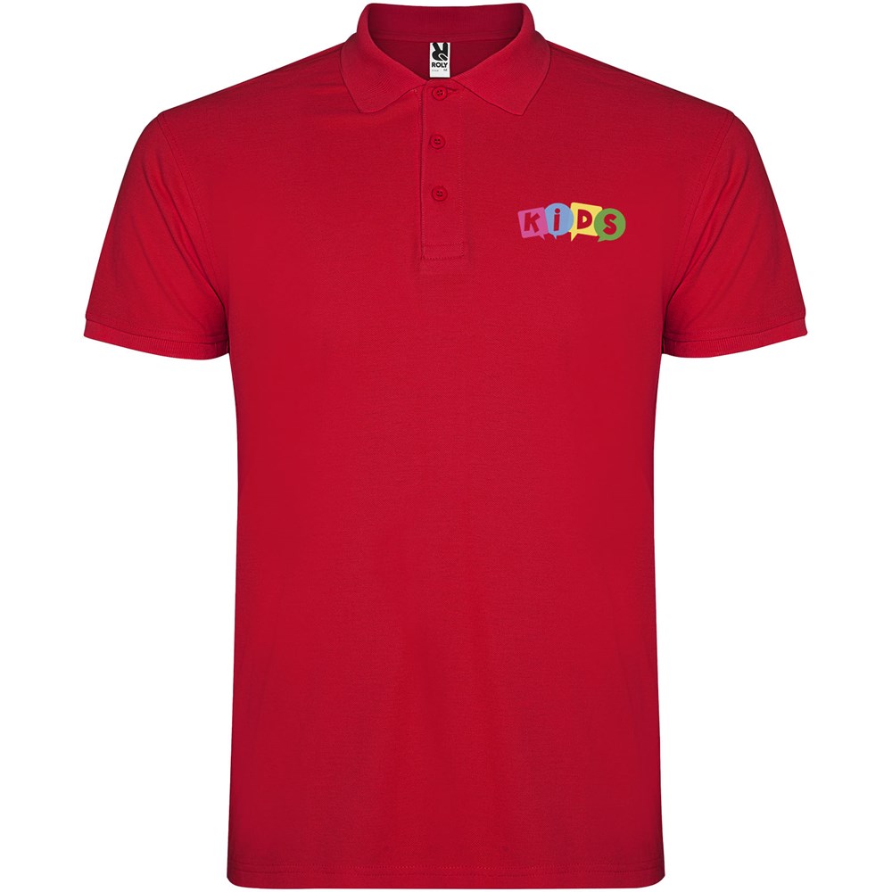 Poloshirt met korte mouwen voor kinderen. Versterkte bedekte naden in de binnenkant van de kraag. 1x1 geribde manchetten en kraag. Zijnaden. Knoopsluiting met drie knopen en zijsplitten. Optionele zak. Verwijderbaar etiket. Het model is 124 cm en draagt maat 5/6.