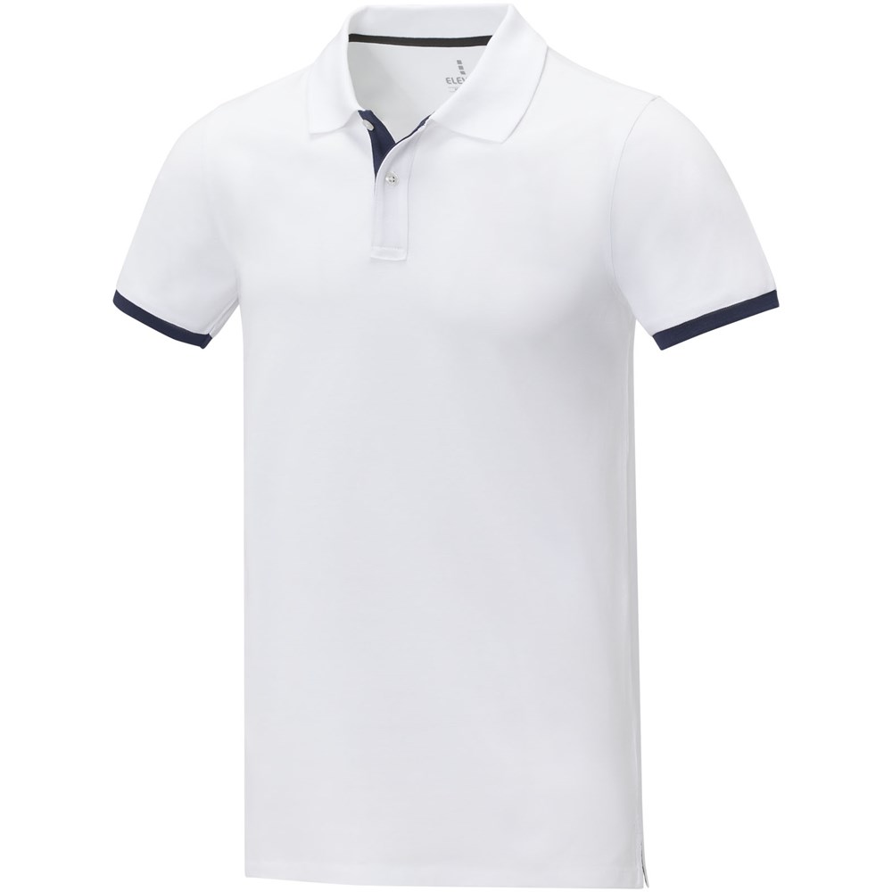 De Morgan duotone herenpolo met korte mouwen is een stijlvolle en comfortabele optie voor elke casual of zakelijke omgeving. Gemaakt van een 200 g/m2 piqué gebreide katoenen stof, is deze polo zowel duurzaam als ademend. Deze polo heeft een platte gebreide kraag en ribboorden met contrastkleurige details en geeft een moderne draai aan een klassiek ontwerp. De knoopsluiting met twee knopen en de stikdetails voegen een extra vleugje verfijning toe, en de satijnen nekband en het heat transfer hoofdlabel zorgen voor comfort en draaggemak.