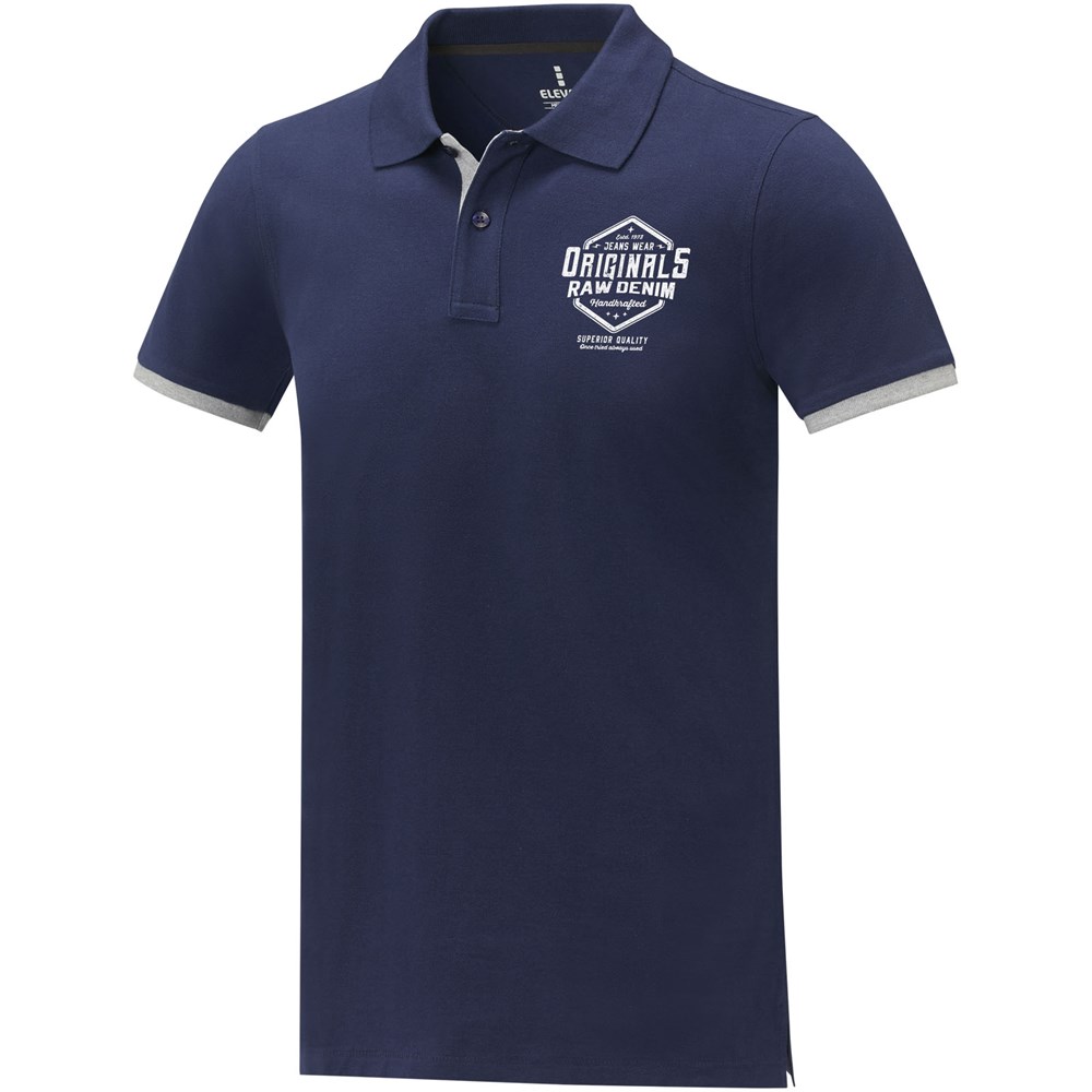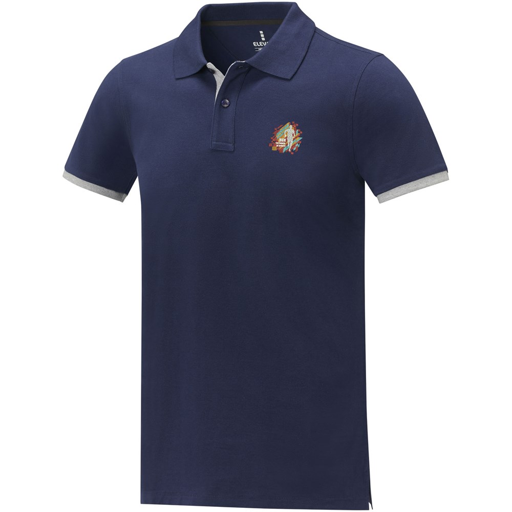 De Morgan duotone herenpolo met korte mouwen is een stijlvolle en comfortabele optie voor elke casual of zakelijke omgeving. Gemaakt van een 200 g/m2 piqué gebreide katoenen stof, is deze polo zowel duurzaam als ademend. Deze polo heeft een platte gebreide kraag en ribboorden met contrastkleurige details en geeft een moderne draai aan een klassiek ontwerp. De knoopsluiting met twee knopen en de stikdetails voegen een extra vleugje verfijning toe, en de satijnen nekband en het heat transfer hoofdlabel zorgen voor comfort en draaggemak.