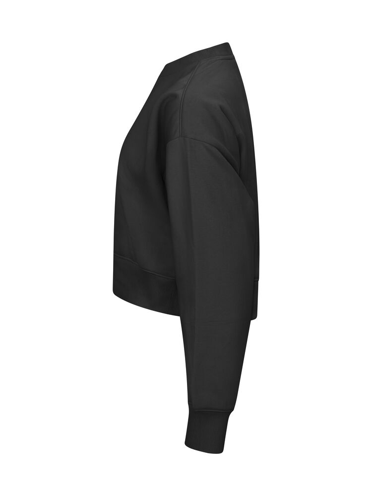 Een ontspannen cropped trui gemaakt van een mix van katoen en gerecycled polyester. Onderkant van de mouw, de zoom en de hals zijn professioneel afgewerkt met een elastische 2x2 rib en enkele stiksels. Voorzien van een necktape van keperstof en gemakkelijk te verwijderen label voor rebranding. De zachte, gestabiliseerde stof is geschikt voor intensief wassen en heeft een anti-pilling afwerking.