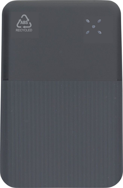 Gerecyclede ABS powerbank met 10.000?mAh Li-ion batterij en 22,5W snellaadfunctie. Voorzien van Type-C in- en uitgang en Type-A ingang. Het ontwerp van de powerbank bestaat uit één derde glad oppervlak voor bedrukking en twee derde met reliëfstructuur. Bovenop zit een digitale display voor het weergeven van de batterijcapaciteit. Beschermd tegen oververhitting, kortsluiting, overspanning en overstroom. Inclusief label met gerecycled ABS-logo op de achterzijde. Individueel verpakt in een bruine kartonnen doos met zijdepapier.