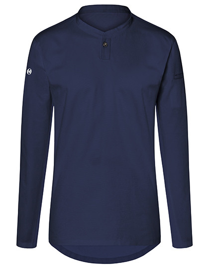 Voorkant: keperstof | Rug: jersey piqué, ademend, vochtregulerend | Lange mouwen | Passend model | Halslijn met smalle opstaande kraag en kleine knoopsluiting | Opgezette zak op linkermouw