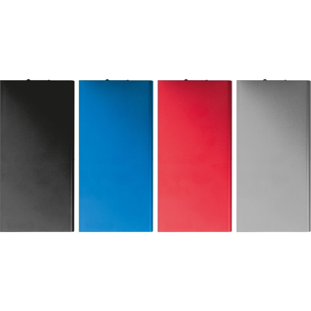 Aluminium powerbank met laadniveau-indicator en een capaciteit van 8.000 mAH. Inclusief micro-USB-oplaadkabel. Wij graveren uw reclame op de powerbank.