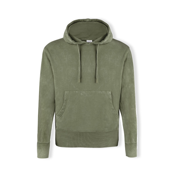 Uniseks sweatshirt met capuchon en gewassen jeanseffect, waardoor elk stuk uniek en onherhaalbaar...meer