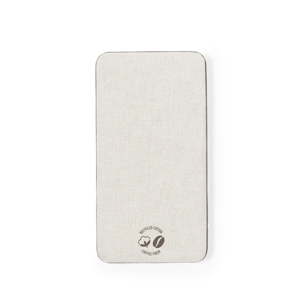 Externe 5.000 mAh hulpbatterij, gemaakt van koffievezel en gerecycled katoen. Met 2...meer