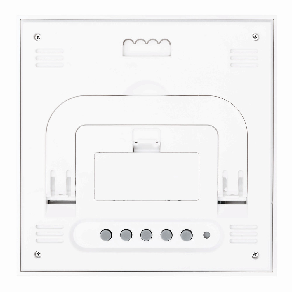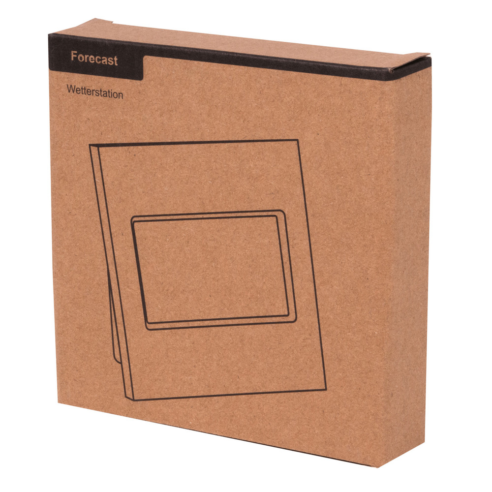 Weerstation FORECAST: met bamboe cover, alarmfunctie, datum- en tijdweergave, hygrometer en thermometer (voor °C en °F), uitklapbare standaard en gat voor wandmontage aan de achterkant, werkt op batterijen (2x AAA niet inbegrepen).