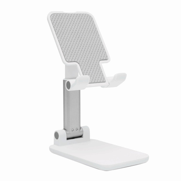 Opvouwbare telefoonhouder DESK KING: antislip standaard, in helingshoek en hoogte verstelbaar, siliconen pad voor een veilige grip van de telefoon.