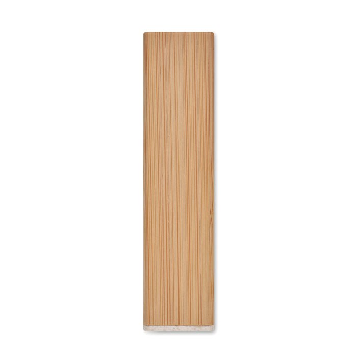 Powerbank 2600 mAh in bamboe behuizing. Capaciteit voor smartphone, uitgangsstroom DC5V/2A. Inclusief USB Type-C oplaadkabel met Type-A adapter. In-/uitgang: USB Type-C.