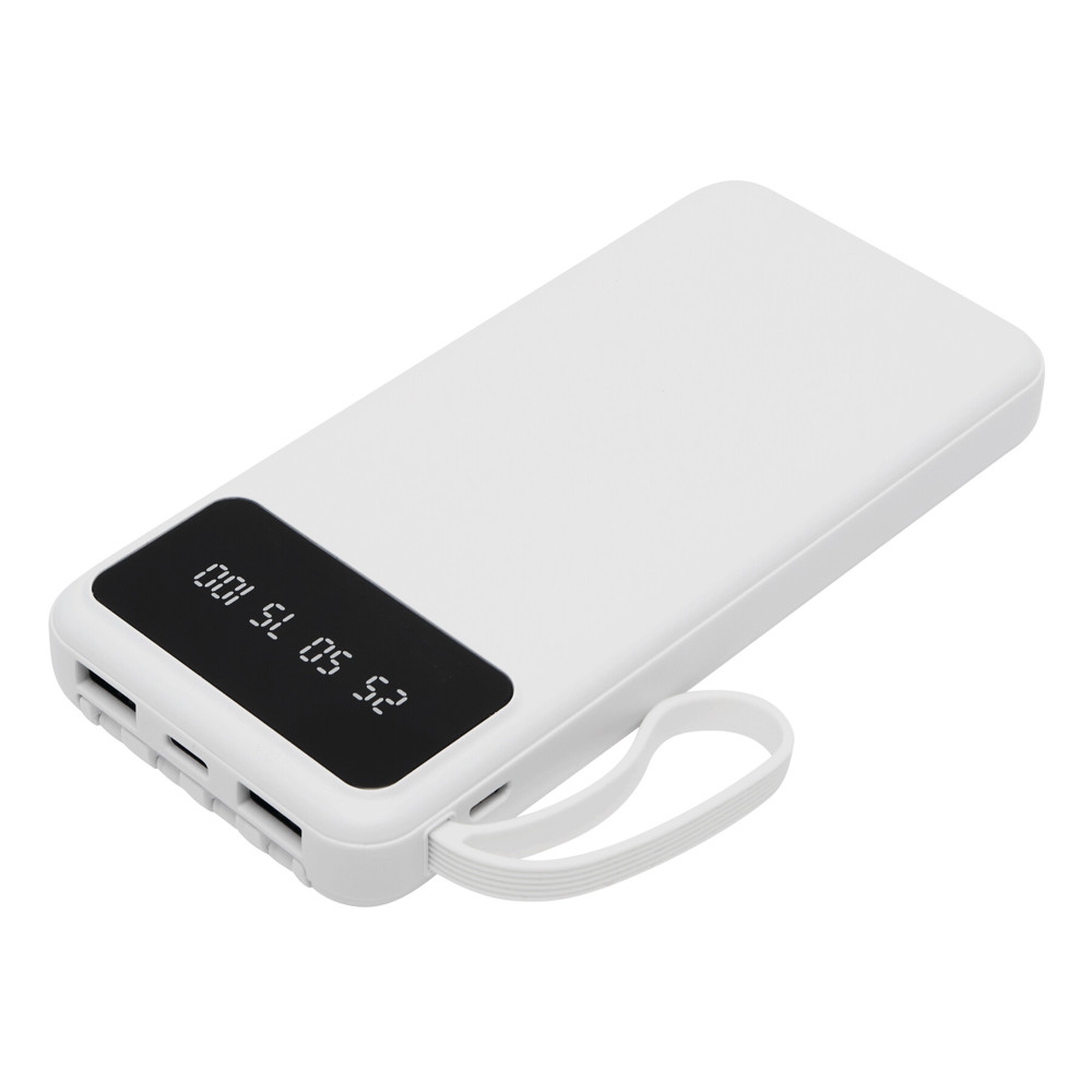Powerbank MULTI CHARGE: geschikt voor smartphones en USB-apparaten, 2 USB type A en 1 type C uitgangen, capaciteit: 10.000 mAh, 4 geïntegreerde oplaadkabels aan de achterkant (type C, micro-USB, Lightning® en USB type A), laadniveau-indicator (25 / 50 / 75 / 100 %), krachtige batterij, ingangsvermogen: 5V/2A, uitgangsvermogen: 5V/2A (max.), met uittrekbare smartphonehouder, met aan/uit-schakelaar
