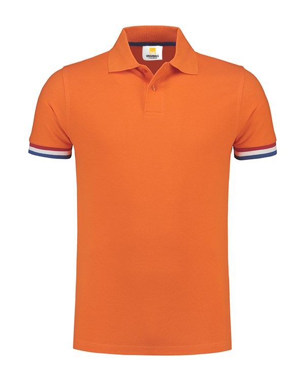 Lemon & Soda unisex pique poloshirt met korte mouwen. De polo heeft een mooi vallende pasvorm en is verkrijgbaar in orange met de Nederlandse vlag bij de mouw boord.