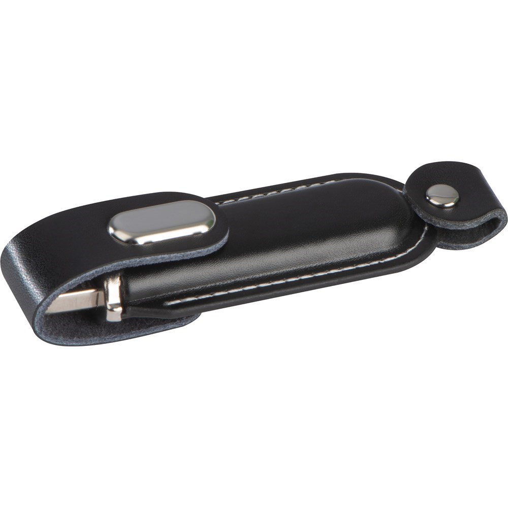 USB-stick met een opslagcapacitiet van 4GB in een lederen etui. Uw logo wordt met een gravure op het leer aangebracht. Voor leveringen in Duitsland wordt een Gema-toeslag berekend.
