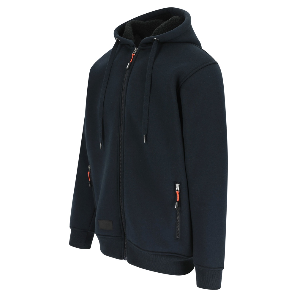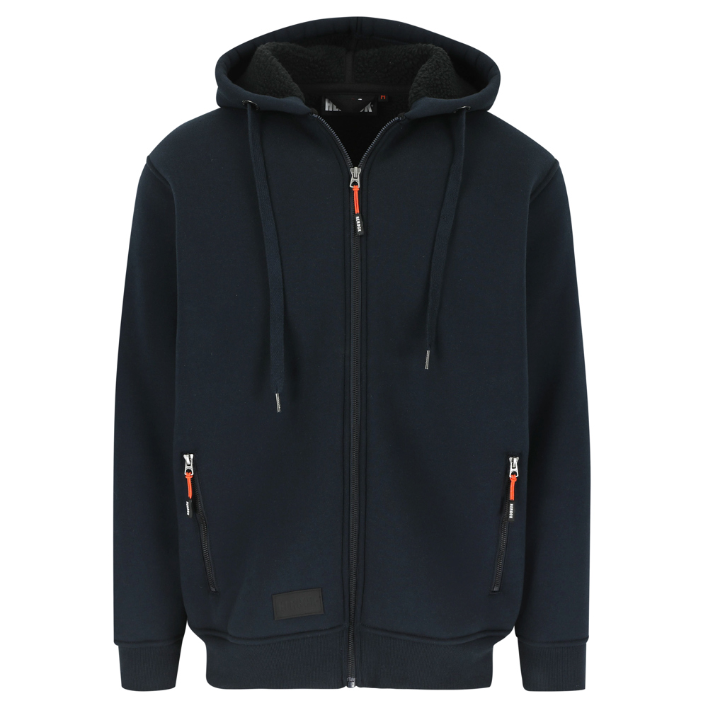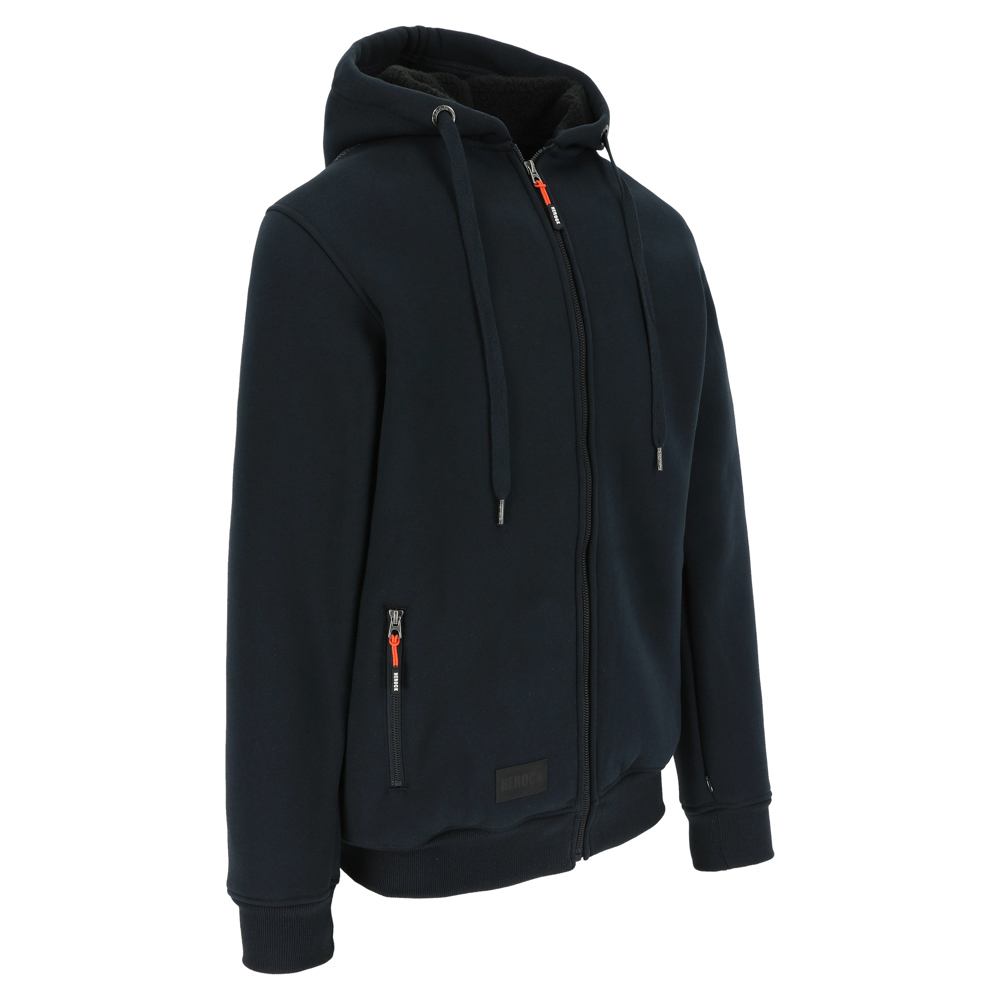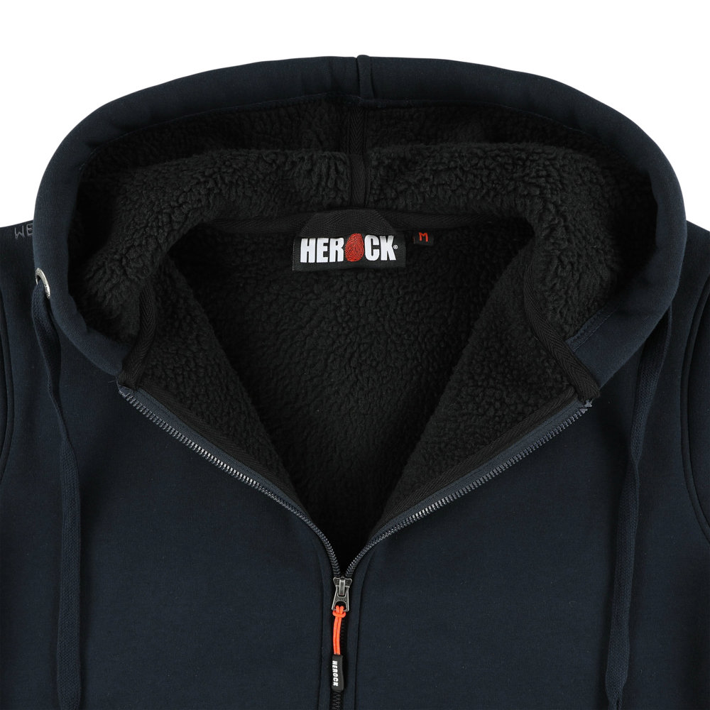 Sweater met HEROCK® print, kap en lange rits 2 steekzakken 1 verdekte mouwzak Ribmanchetten en -onderkant
