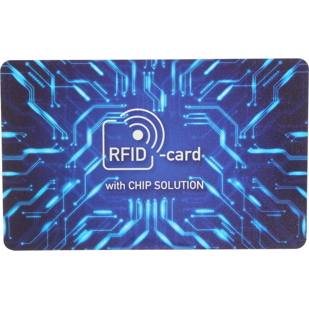 RFID- en NFC-bescherming met ingebouwde chipblokkeraar voor je portemonnee. Een RFID-kaart in je portemonnee als perfecte bescherming tegen onbevoegd uitlezen van je creditcardgegevens. de kaart blokkeert signalen in een straal van 3-5 cm. kleur wit. materiaal PVC. verpakking: per stuk in een PE-zakje met instructies.