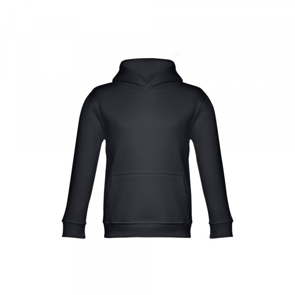 Sweatshirt met capuchon voor kinderen (unisex). Van 50% katoen en 50% polyester (320 g/m²) met gekaarde binnenkant. Met jersey gevoerde capuchon die voldoet aan de veiligheidsnormen van de Europese Unie. Sweatshirt met buidelzak en 1x1 rib mouwen en tailleband. Maten: 2, 4, 6, 8, 10, 12