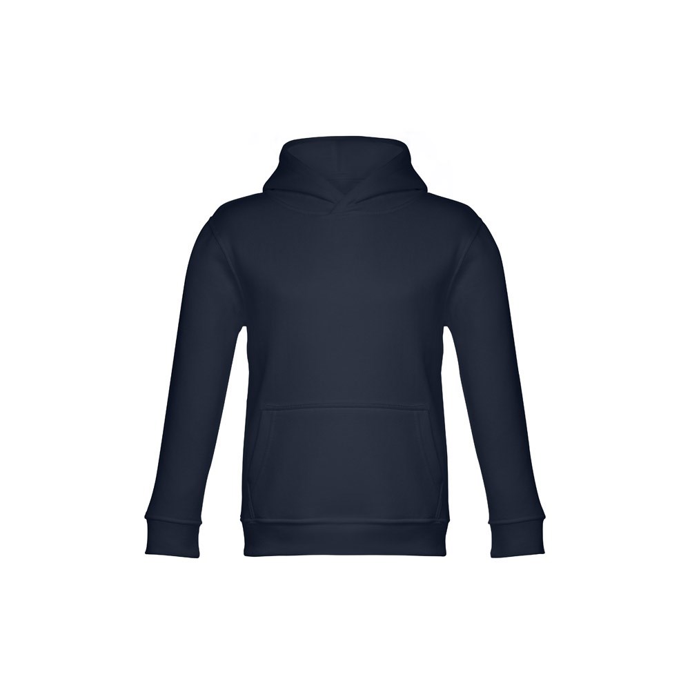 Sweatshirt met capuchon voor kinderen (unisex). Van 50% katoen en 50% polyester (320 g/m²) met gekaarde binnenkant. Met jersey gevoerde capuchon die voldoet aan de veiligheidsnormen van de Europese Unie. Sweatshirt met buidelzak en 1x1 rib mouwen en tailleband. Maten: 2, 4, 6, 8, 10, 12
