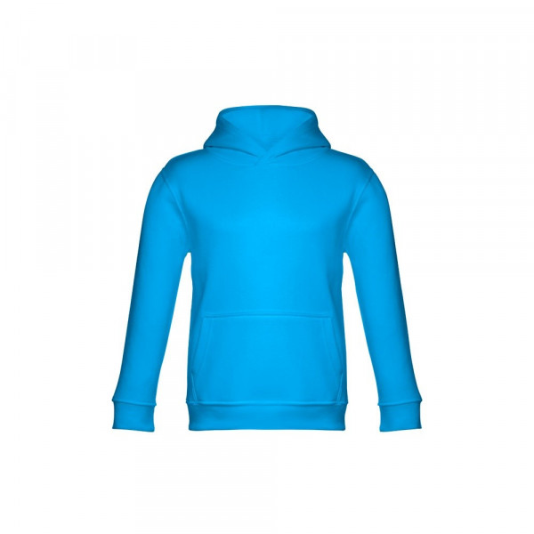 Sweatshirt met capuchon voor kinderen (unisex). Van 50% katoen en 50% polyester (320 g/m²) met gekaarde binnenkant. Met jersey gevoerde capuchon die voldoet aan de veiligheidsnormen van de Europese Unie. Sweatshirt met buidelzak en 1x1 rib mouwen en tailleband. Maten: 2, 4, 6, 8, 10, 12