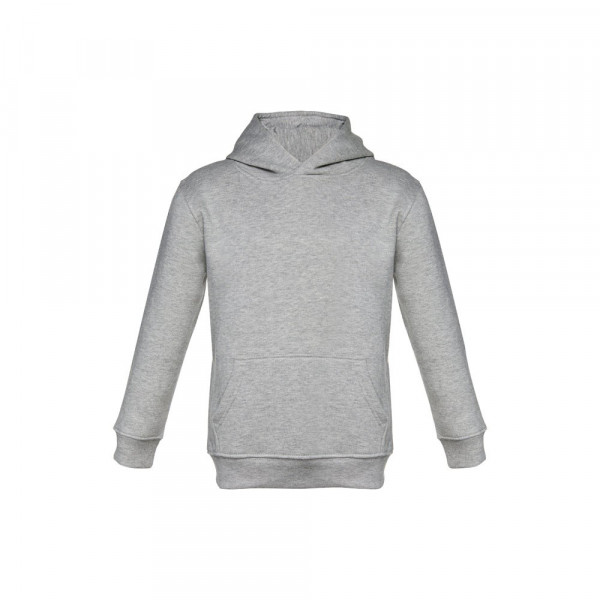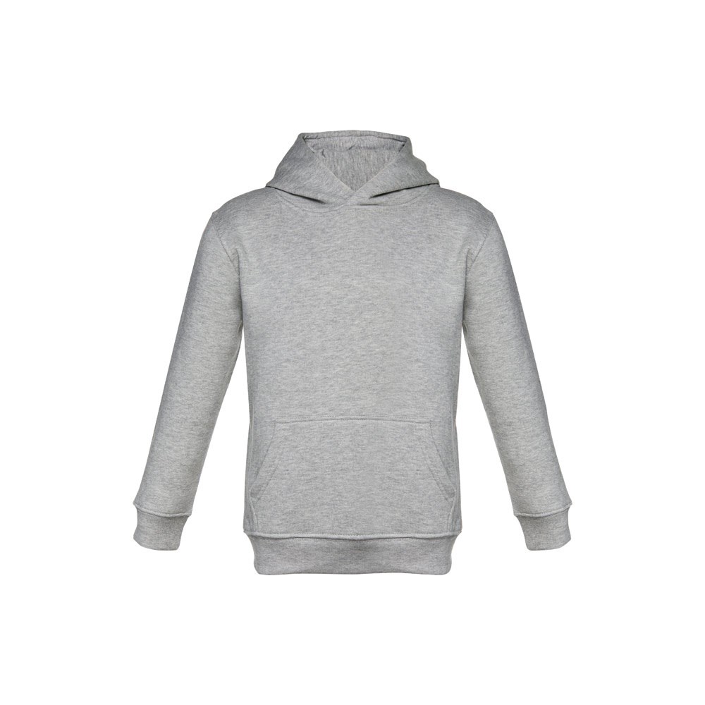 Sweatshirt met capuchon voor kinderen (unisex). Van 50% katoen en 50% polyester (320 g/m²) met gekaarde binnenkant. Met jersey gevoerde capuchon die voldoet aan de veiligheidsnormen van de Europese Unie. Sweatshirt met buidelzak en 1x1 rib mouwen en tailleband. Maten: 2, 4, 6, 8, 10, 12