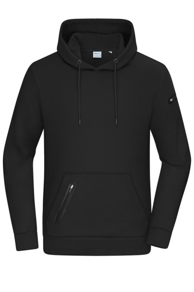 Hoogwaardige Interlock-kwaliteit Aangename materialenmix van BIO-katoen, gerecycled polyester en elastaan Technische details Buidelzak met extra zak met ritssluiting Zak met ritssluiting op de linkermouw Zakken met ritssluiting omzoomd met modieuze tape 8045: licht getailleerd 1/2 bovenwijdte: 52 cm Lengte vanaf schouder: 70 cm Mouwlengte: 65 cm OEKO-TEX® Standard 100 (25.HDE.51239) Organic Cotton OCS Standard blended RCS blended Capuchon