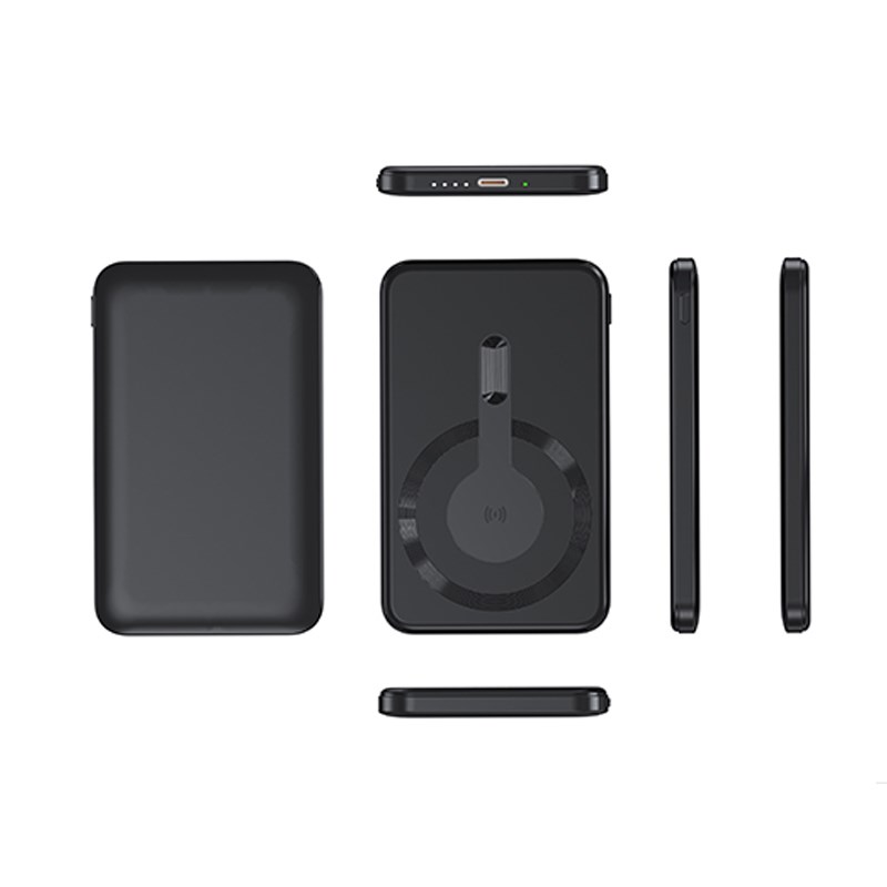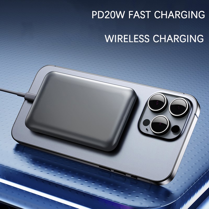 Slank en krachtig: Ideale oplossing voor snel en draadloos opladen, zowel thuis als onderweg. Materiaal: Gemaakt van duurzame aluminiumlegering en ABS voor een hoogwaardige afwerking. Capaciteit: 5000mAh, geschikt voor meerdere oplaadbeurten. Kleurenopties: Verkrijgbaar in stijlvol Zwart, Zilver en Blauw. Uitgangsniveaus: Ondersteunt 5V-3A, 9V-2A en 12V-1,6A (max. 20W). Draadloos opladen: Compatibel met Qi-apparaten en MagSafe-technologie, biedt tot 15W vermogen.
