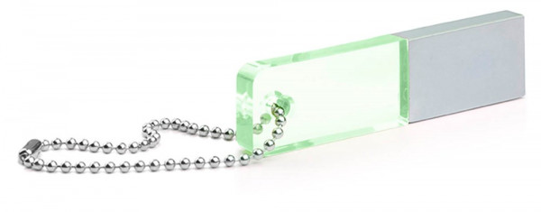 Dunne aluminium USB flash drive met een top deel van acryl wat oplicht wanneer de flash drive in een USB poort zit.