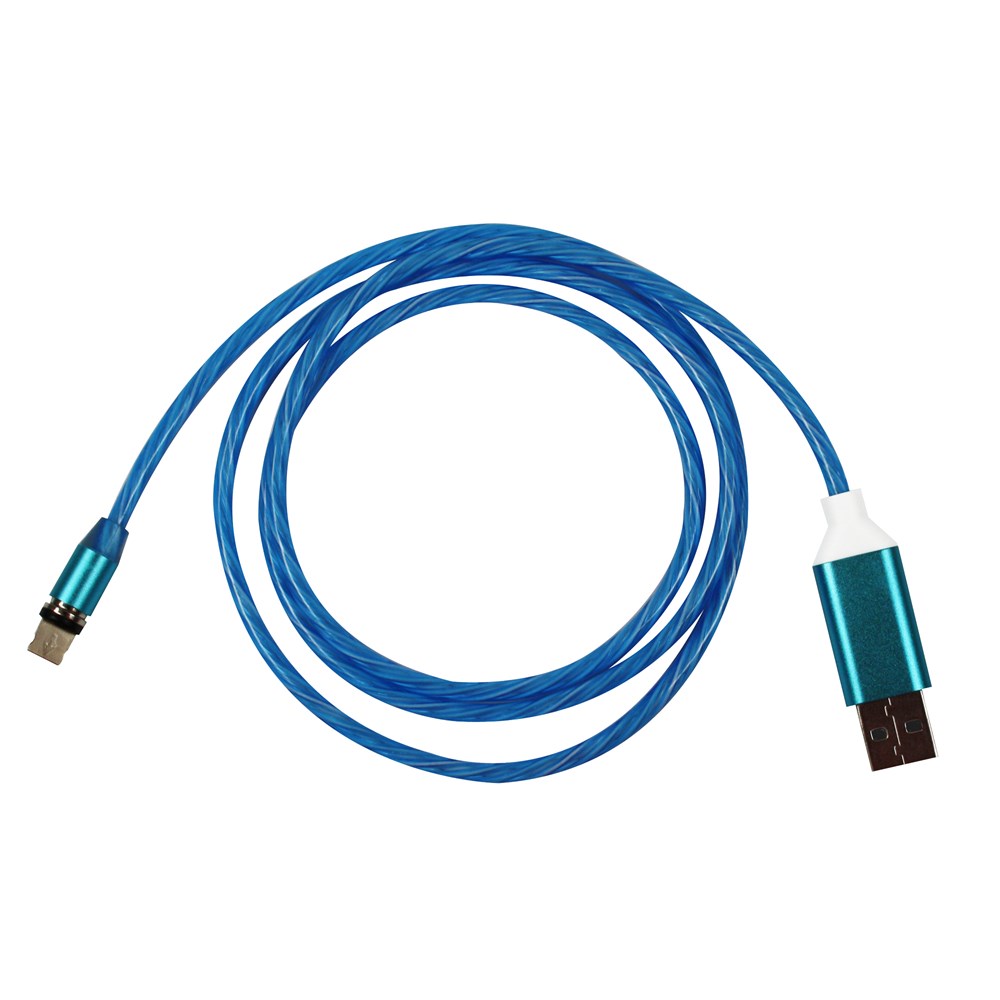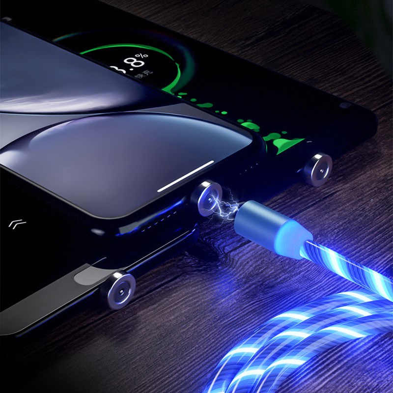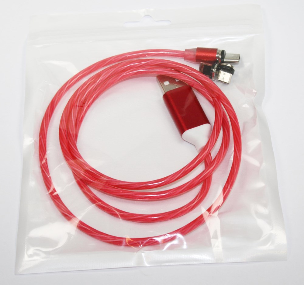 3-in-1 USB-oplaadkabel met continu LED-licht en verwisselbare magnetische aansluitingen. Lengte: 100 cm. Functie: Laadkabel met drie onderling verwisselbare magnetische aansluitingen, de aansluitingen kunnen in het mobiele apparaat blijven en dus beschermen tegen slijtage en vervuiling van de laadaansluiting, met LED-licht met stroomeffect. Kleuren: blauw, groen, wit, roze. Voeding: 2 A, USB 2.0, micro-USB-aansluiting, Apple-aansluiting, USB-C-connector. Inclusief: lasergravure in één positie. Verpakking: polybag.
