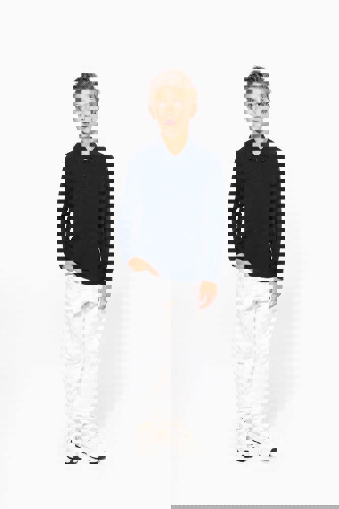 100% katoen (behalve de kleur Oxford Grey: 90% katoen en 10% viscose). Gekamd katoen. Voorgekrompen piquétricot. Rechte snit. Knooplijst met 2 toon-op-toon knopen. Toon-op-toon nektape in de hoofdstof. Kraag in 1x1 ribboord. Mouwuiteinden in dubbele 1x1 ribboord in buisconstructie. In de ribboord aan de mouwuiteinden zit elasthaan om vervorming te voorkomen. De zoom onderaan kreeg een dubbel stiksel. Geen merklabel, maar een maatlabel in de kraag voor eenvoudige personalisatie.
