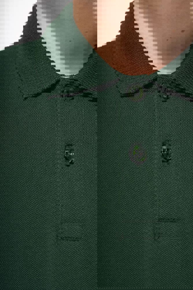 100% katoen (behalve de kleur Oxford Grey: 90% katoen en 10% viscose). Ringgesponnen voorgekrompen gekamd katoen. Piqué steek. Rechte snit. Knooplijst met 2 toon-op-toon knopen. Toon-op-toon nektape in de hoofdstof. Kraag en mouwuiteinden in 1x1 ribboord. Dubbel stiksel aan de onderkant. In de ribboord aan de mouwuiteinden zit elasthaan om vervorming te voorkomen. Geen merklabel, maar een maatlabel in de kraag voor eenvoudige personalisatie.