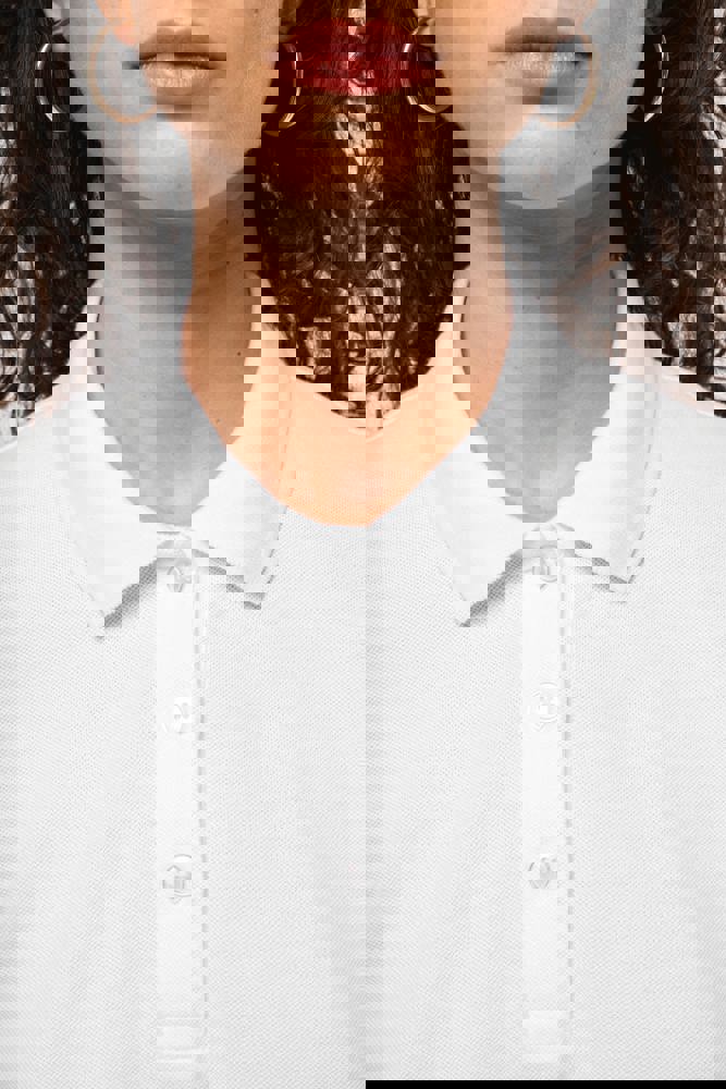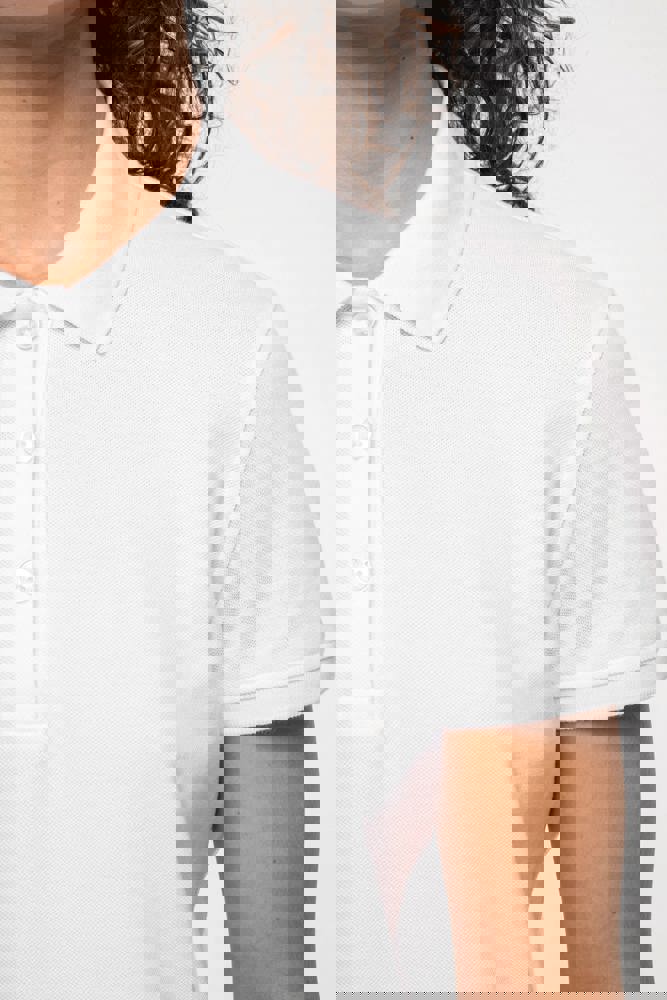 100% katoen. Gekamd katoen. Piquétricot. Rechte snit. Gemaakt in Portugal. Zijnaden. 1x1 ribboord aan hals en mouwuiteinden. Knooplijst met 3 contrasterende parelmoeren knopen op alle kleuren. Bijpassende nektape in de hoofdstof in de kraag. Verstevigde schouders. Zijsplitten. Boord onderaan afgewerkt met dubbel stiksel. Geen merklabel, enkel een afscheurbaar maatlabel voor eenvoudige personalisatie.
