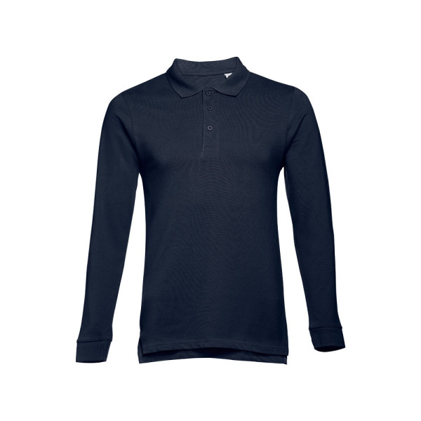 Herenpolo met lange mouwen van 100% gekaard piqué katoen (210 g/m²) (kleur 183: 85% katoen/15% viscose). Regular-fit polo met ribkraag en manchet knopen, de kraag is verstevigd met piquébreisel. Bevat een verstevigde kraag met 3 bijpassende knopen (extra knoop in de binnenzoom). Gesneden en genaaid stuk met openingen aan de onderkant. Met een verwijderbaar etiket. Maten: S, M, L, XL, XXL