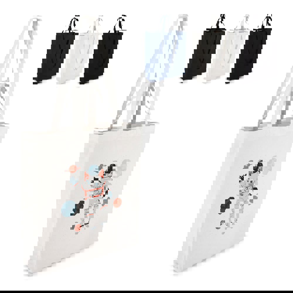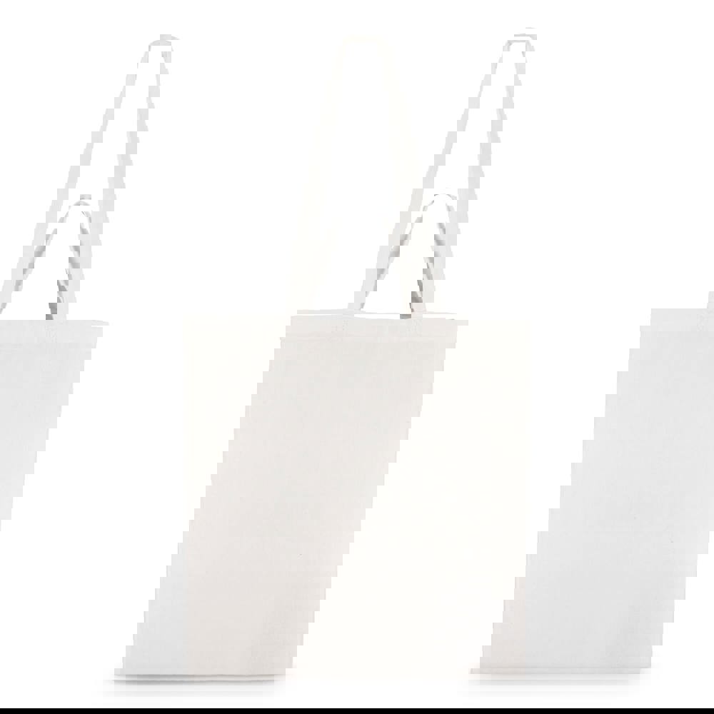 Veelzijdige katoenen tote van 140gsm in diverse kleuren, met zowel lange als korte handvatten voor flexibel draagcomfort. Oeko-Tex® gecertificeerd. Praktisch voor retail, events of dagelijks gebruik.