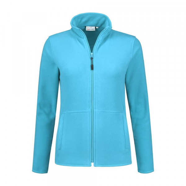 Fleecejack, 100% polyester, 280 gr/m², polar fleece, tweezijdig geruwd, buitenzijde anti-pilling, ladies fit met opstaande kraag, mouwsluiting met elastiek, 2 steekzakken met YKK rits en onderzijde verstelbaar middels koord/stopper.