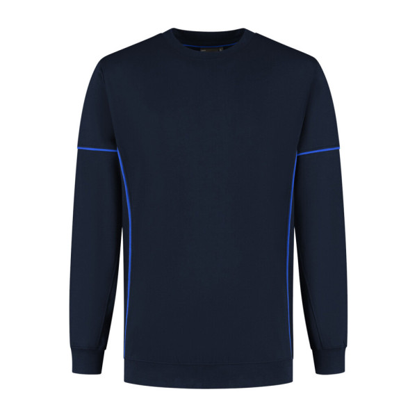 Sweater met contrast piping, 50% gerecycled polyester / 48% organisch katoen / 2% elastan (GRS gecertificeerd), 320 gr/m², french terry met geruwde binnenzijde, unisex, regular fit, ronde hals met 1x1 ribboord, mouw met contrast piping, tailleband en mouw met 1x1 ribboord, 3D logo transfer op onderzijde.