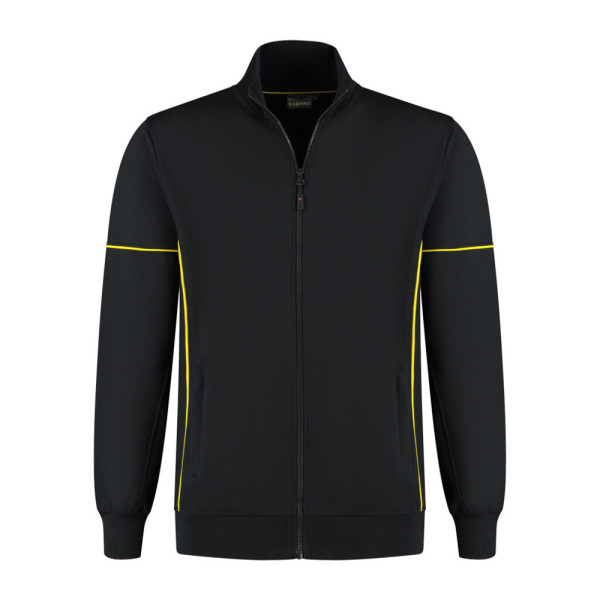 Sweatvest met contrast piping, 50% gerecycled polyester / 48% organisch katoen / 2% elastan (GRS gecertificeerd), 320 gr/m², french terry met geruwde binnenzijde, unisex, regular fit, opstaande kraag, voorsluiting YKK rits met puller, 2 steekzakken met YKK rits en puller, mouw met contrast piping, tailleband en mouw met 1x1 ribboord, 3D logo transfer op onderzijde.