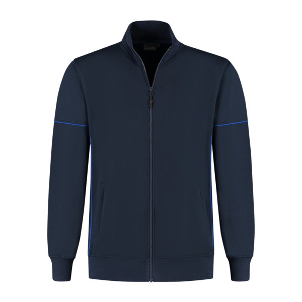 Sweatvest met contrast piping, 50% gerecycled polyester / 48% organisch katoen / 2% elastan (GRS gecertificeerd), 320 gr/m², french terry met geruwde binnenzijde, unisex, regular fit, opstaande kraag, voorsluiting YKK rits met puller, 2 steekzakken met YKK rits en puller, mouw met contrast piping, tailleband en mouw met 1x1 ribboord, 3D logo transfer op onderzijde.