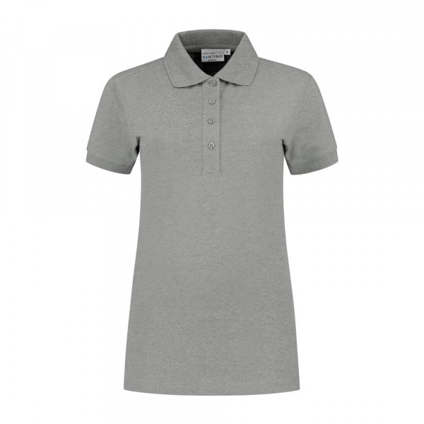 Poloshirt, 50% polyester / 50% lange vezel katoen, 220 gr/m², pique, ladies fit met polo-ribkraag en 4-knoopsluiting, korte mouwen met ribmanchet, splitjes in zijnaad, schouders voorzien van een dubbele laag stof voor extra versteviging, halve maan en anti-microbiële afwerking. (Sport grey is melange: 85% gekamd katoen / 15% viscose).