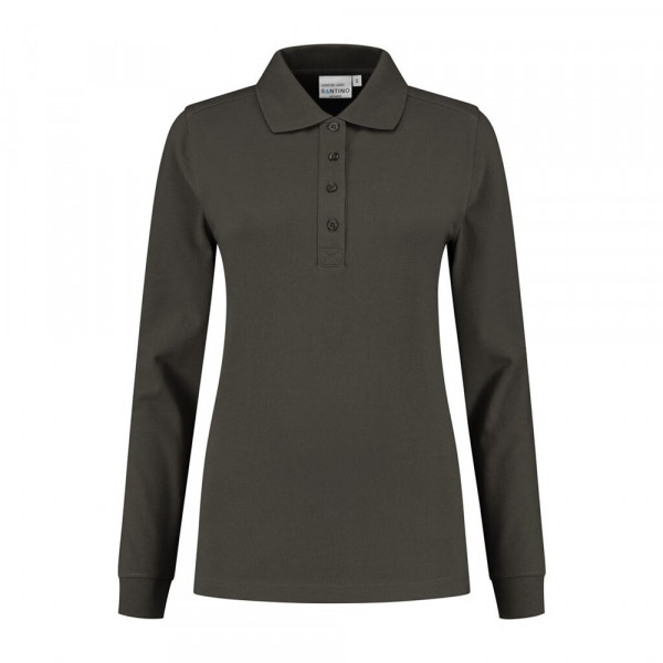 Poloshirt met lange mouw, 50% polyester / 50% lange vezel katoen, 220 gr/m², pique, ladies fit met polo-ribkraag, en 4-knoopsluiting, lange mouw met ribmanchet, 1x1 ribboord, splitjes in zijnaad, schouders voorzien van een dubbele laag stof voor extra versteviging, halve maan en anti-microbiële afwerking. (Sport grey is melange: 85% gekamd katoen / 15% viscose).