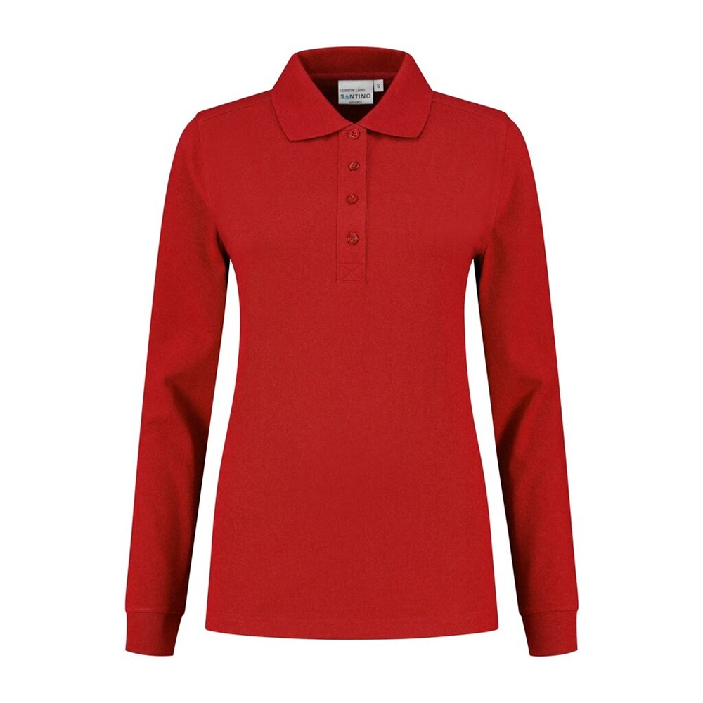 Poloshirt met lange mouw, 50% polyester / 50% lange vezel katoen, 220 gr/m², pique, ladies fit met polo-ribkraag, en 4-knoopsluiting, lange mouw met ribmanchet, 1x1 ribboord, splitjes in zijnaad, schouders voorzien van een dubbele laag stof voor extra versteviging, halve maan en anti-microbiële afwerking. (Sport grey is melange: 85% gekamd katoen / 15% viscose).
