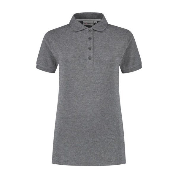 Poloshirt, 60% katoen / 40% polyester, 210 gr/m², piqué, ladies fit met polokraag en 4-knoopsluiting, mouw met ribboord, splitjes in zijnaad en verlengd achterpand. (Dark Grey en Sport Grey zijn melange).