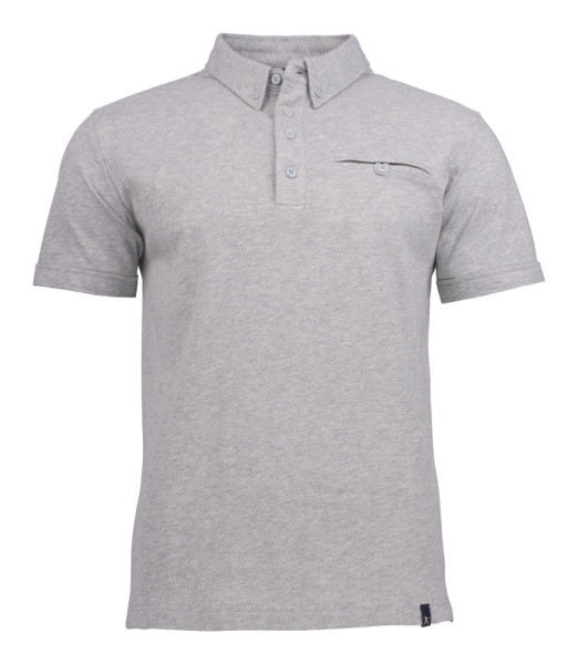 Poloshirt met zijsplittten, zijpanelen in Jaquard en kraag in glad breisel. De herenversie heeft een button­down, borstzakje met knoopje en een vierknoopsluiting. De damesvariant heeft een volledigknopenpad aan de voorzijde. De stof is nabehandeld met een enzyme wash, waardoor het materiaal voorgekrompen is en zacht aanvoelt.