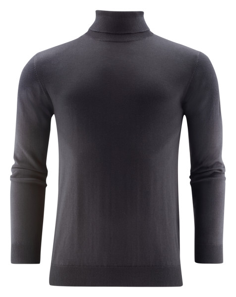 Gebreide sweater met rolkraag. 1x1 rib aan de zoom, manchetten en rolkraag.