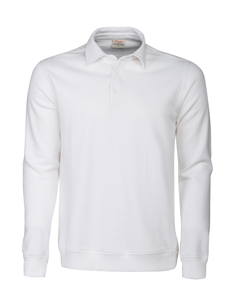 Sweatshirt met polokraag. 2 x 2 rib met elastaan aan de boord onderaan en aan de manchetten. Oeko-Tex 100 gecertificeerd.