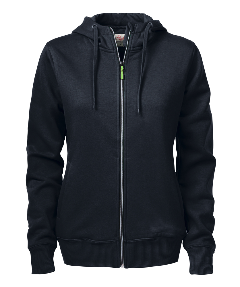Sweatshirt met capuchon met tweekleurige ritssluiting vooraan en lichtgebogen steekzakken. De binnenkant van de capuchon is single jersey. De zippullers kunnen indien gewenst vervangen worden door één van de andere beschikbare kleuren. Oeko-Tex 100 gecertificeerd.