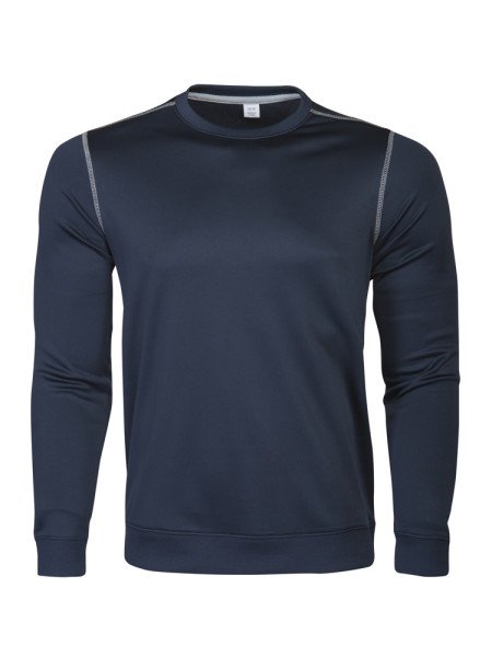 Polyester sweatshirt met ronde hals. Contrasterende flatlock naden aan de schouders en mouwopening. Binnenzijde is geborsteld voor een zacht en warm gevoel.