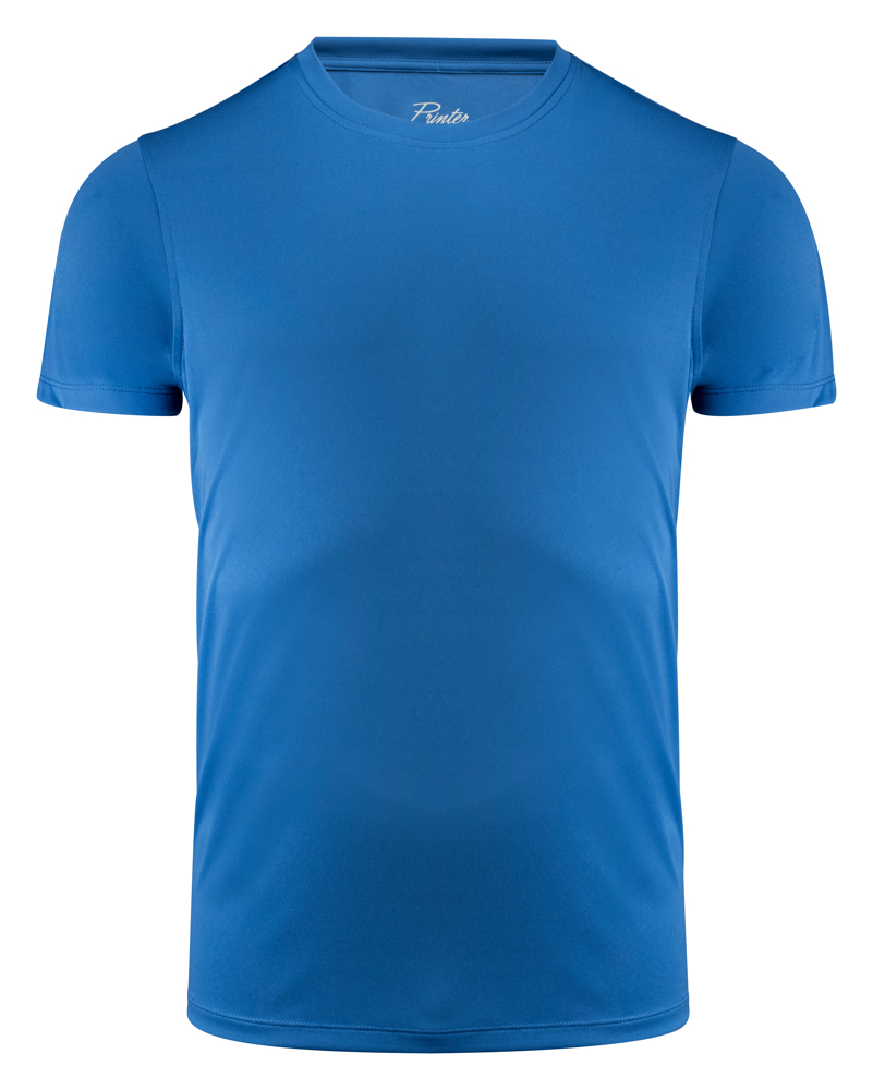 Polyester T-shirt met ronde hals. Het materiaal is spun-dyed wat betekent dat deze T-shirts ingeverfd worden met een milieuvriendelijke verfmethode, die als extra voordeel een betere kleurechtheid geeft. Oeko-Tex 100 gecertificeerd.