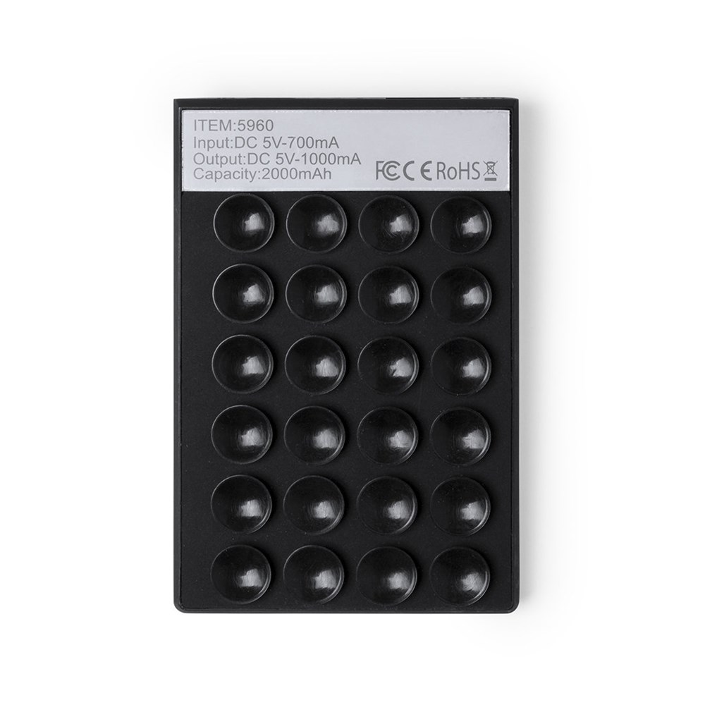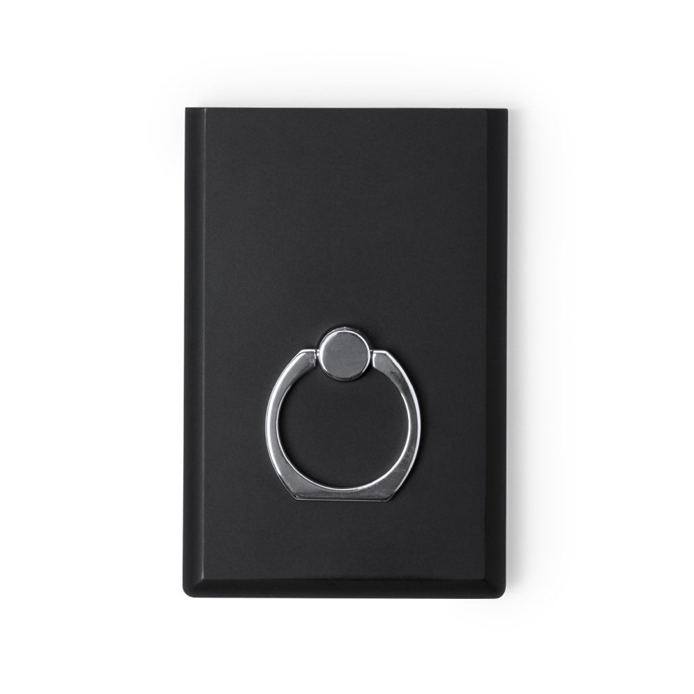 Powerbank, 2,000 mAh. Voorzien van een ring/houder om ideaal om selfies mee te maken. Inclusief een ingang uitgang voor micro USB en USB. Met laadindicator LED, speciaal design en een mooie bedrukkingsruimte. Wordt geleverd zonder USB kabel, maar wel in een mooie geschenkverpakking.